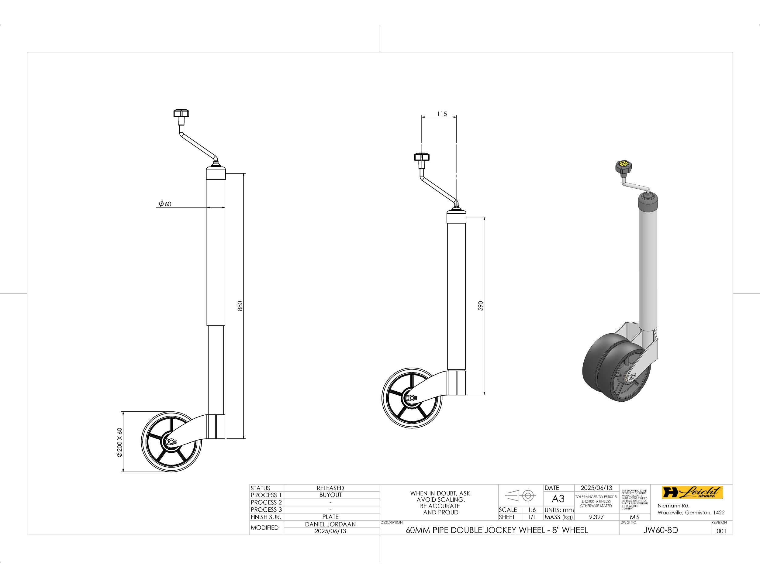 Technical Information - 60mm Pipe Double, 8" Wheel