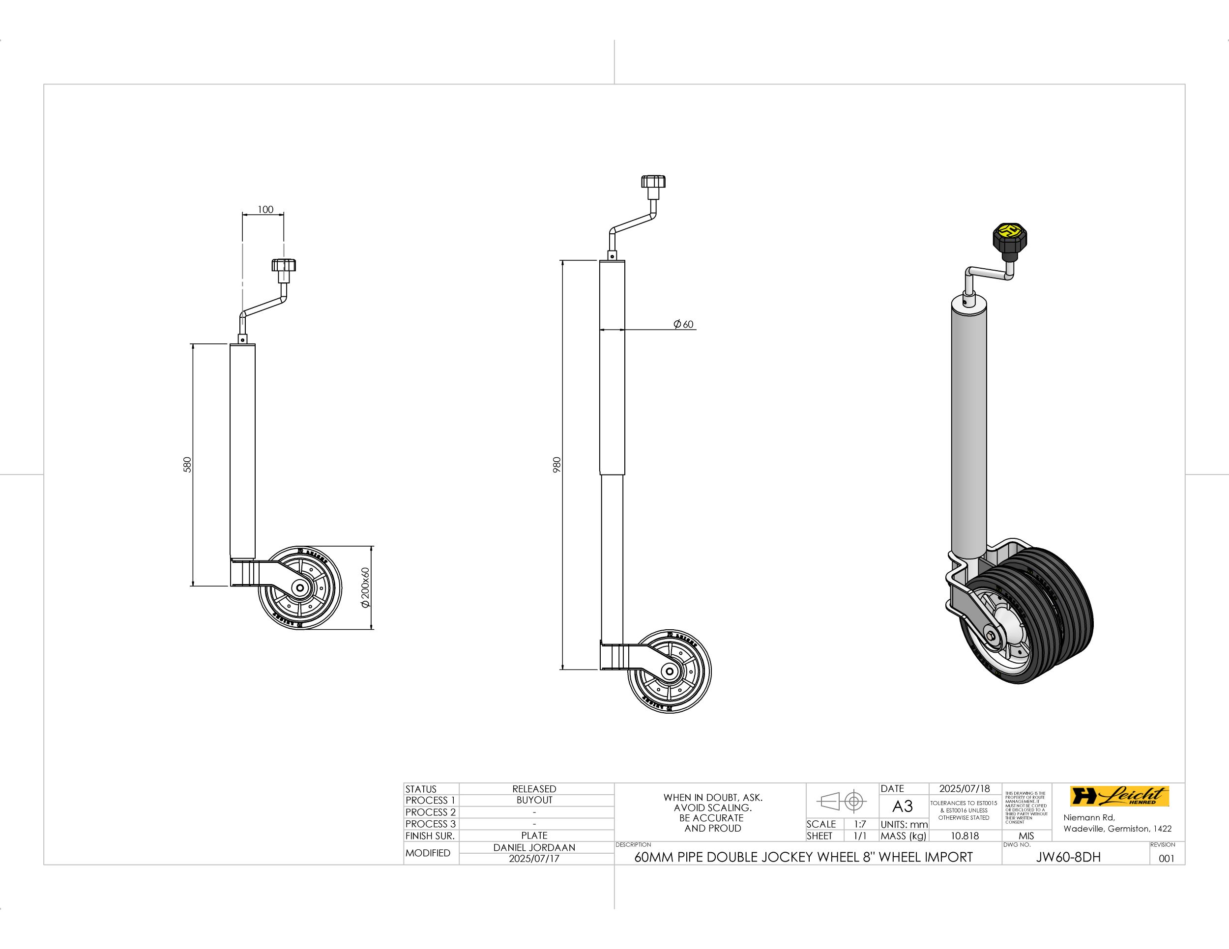 60MM PIPE DOUBLE JOCKEY WHEEL 8″ WHEEL IMPORT