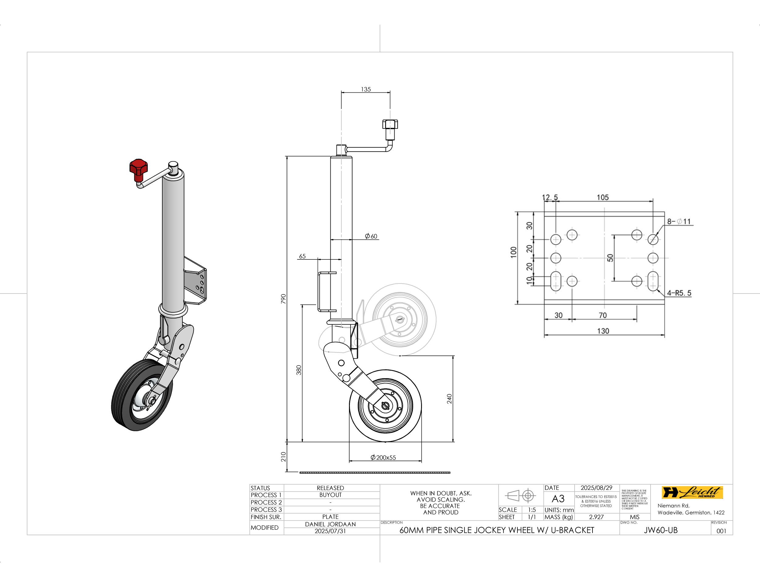 60mm Pipe Single Jockey Wheel U-Bracket quantity
