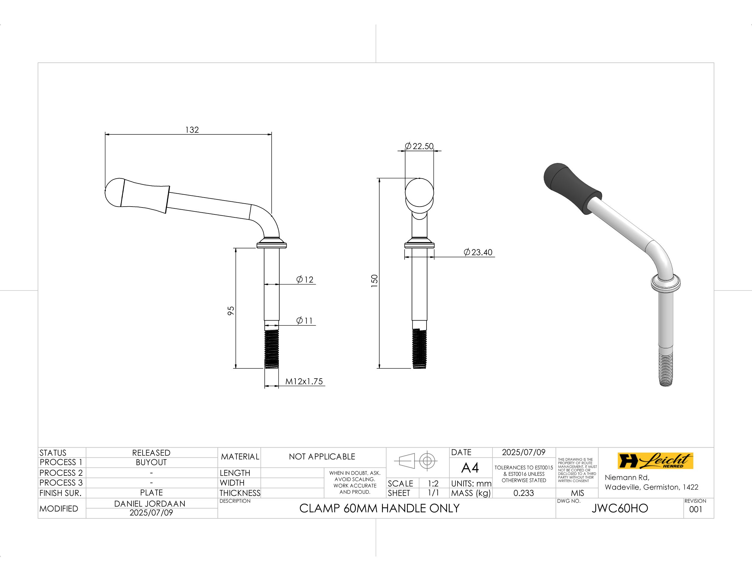 Clamp 60mm Handle Only