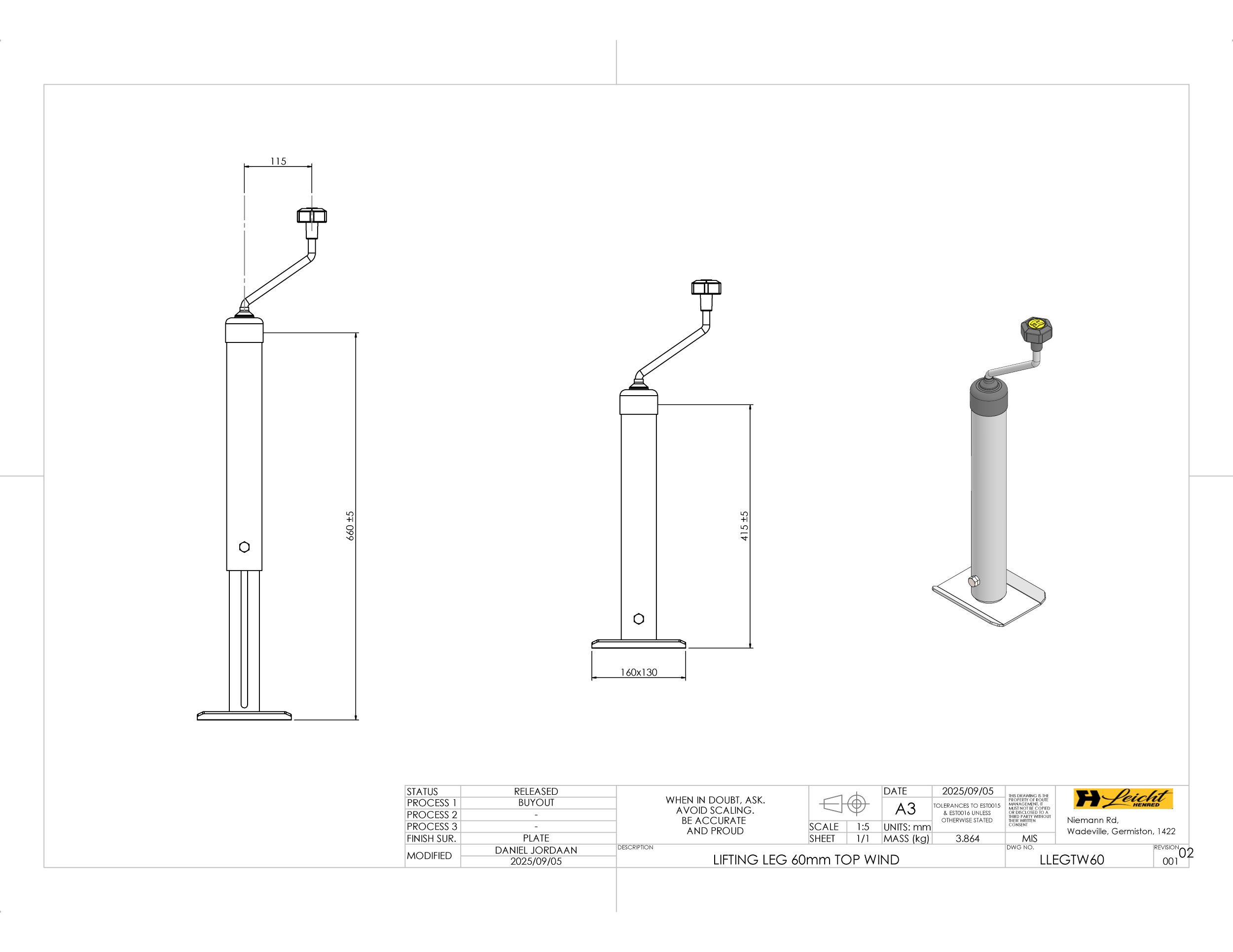 Lifting Leg 60mm Top Wind