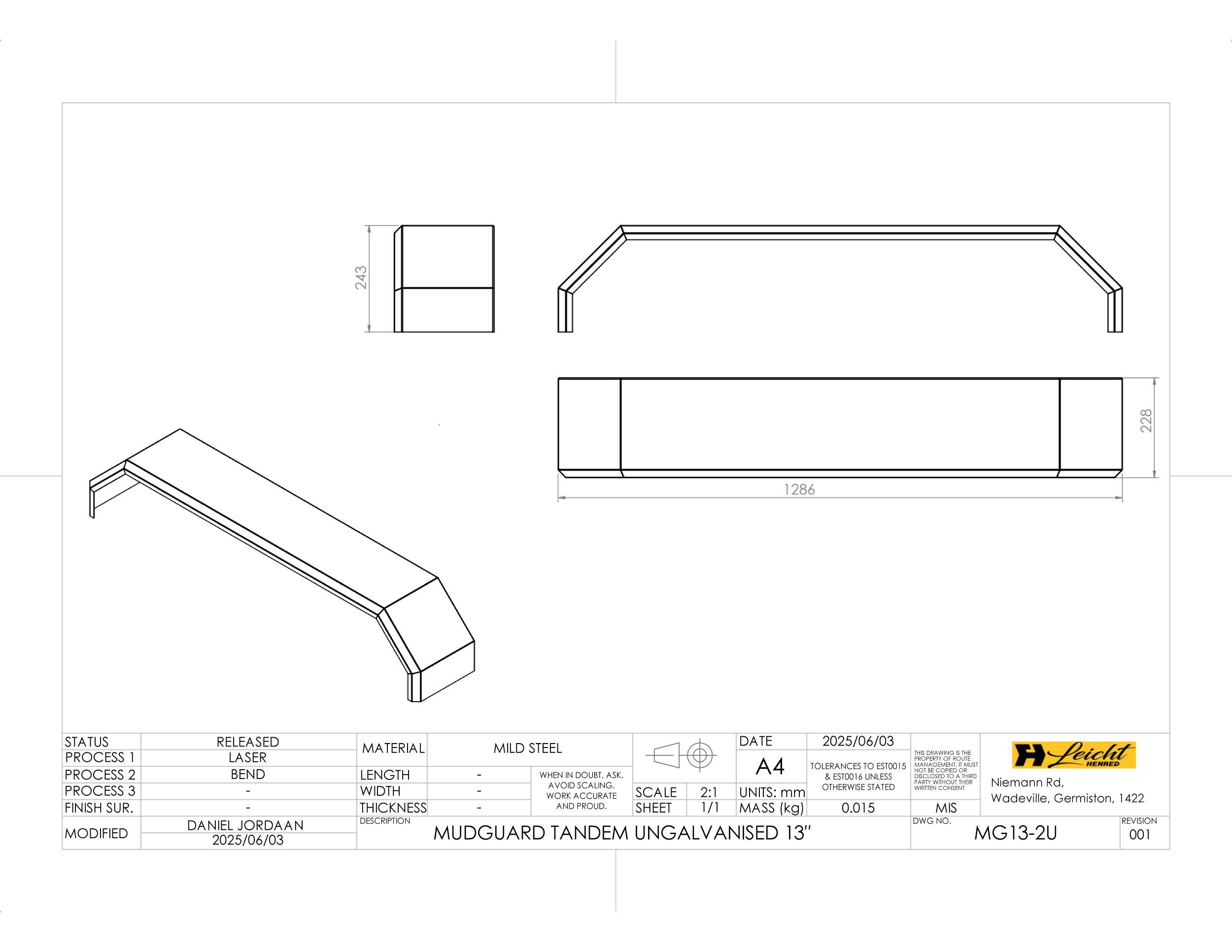MUDGUARD TANDEM UNGALVANISED 13" quantity