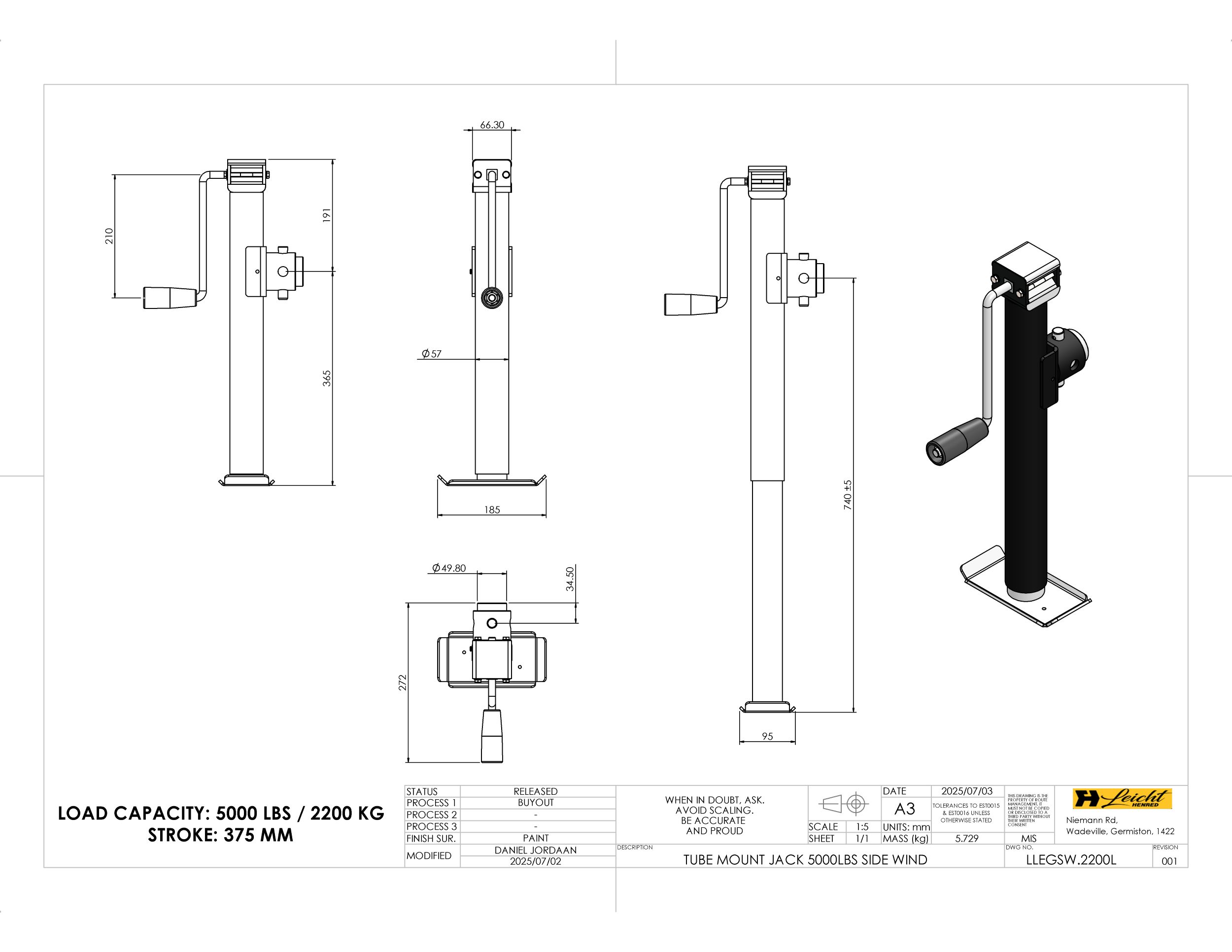 Tube Mount Jack 5000lbs Side Wind